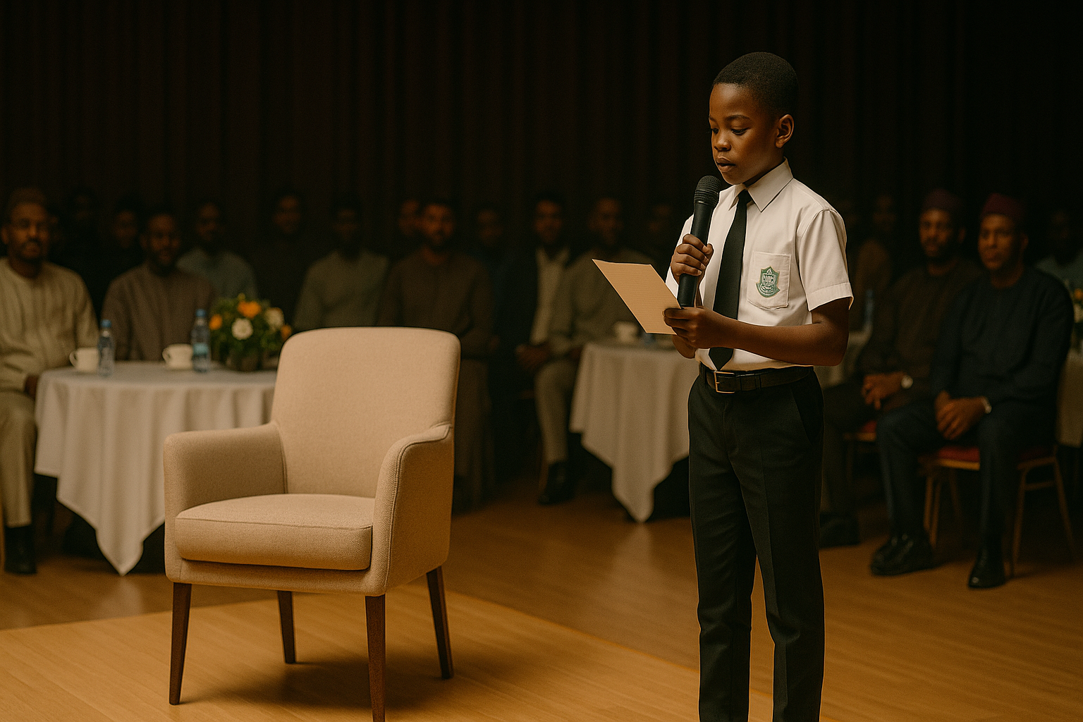The boy waited. He looked at the single, empty chair in the middle of the vast stage. A spotlight on absence. He looked out at the silent crowd, then back at the chair. And with a courage that humbled every man in that room, he began to read his letter.